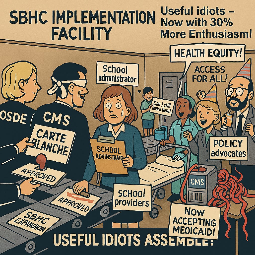 The term “useful idiot” suggests manipulation or blind allegiance—but that label doesn’t fit here. The actions of OHCA and OSDE appear calculated and policy-driven, designed to harness federal funding to address student health needs through programs like SBHC.